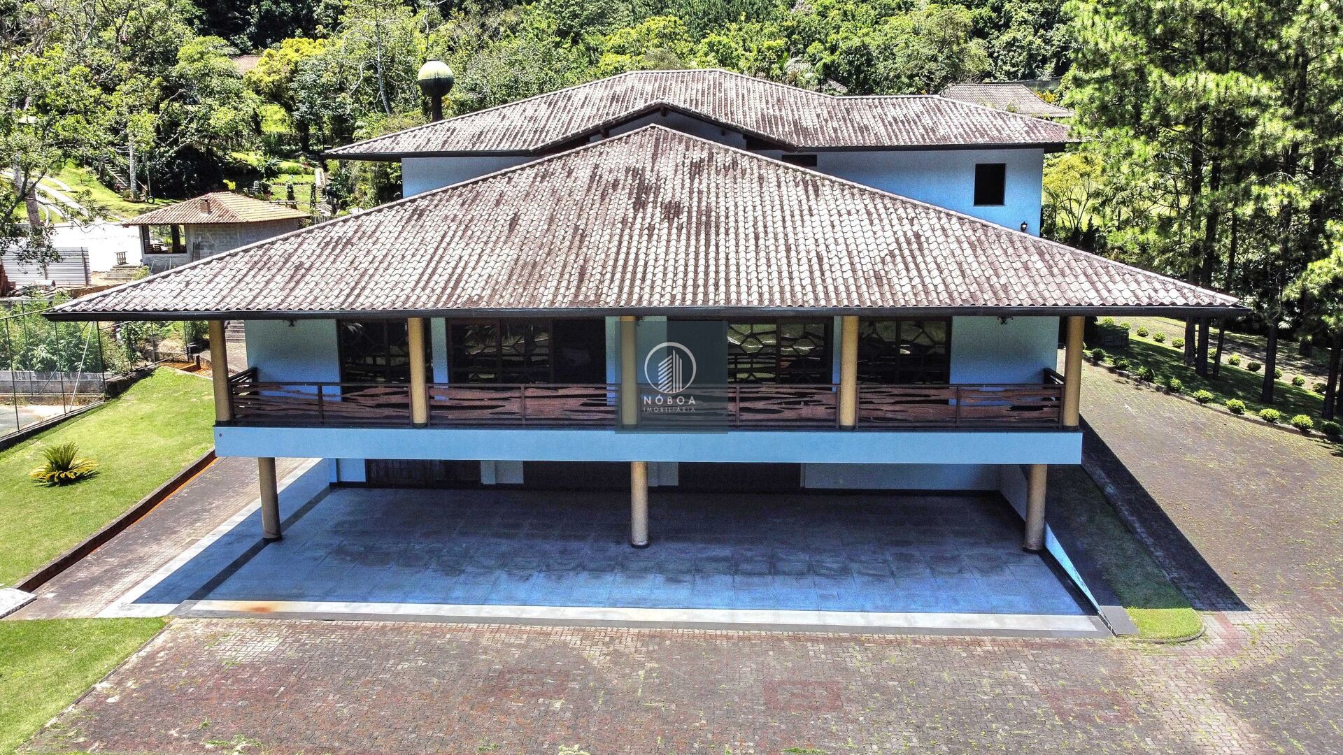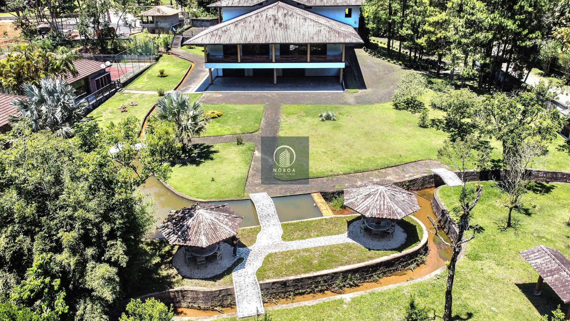 Com um terreno plano de mais de 4.000 m² e uma área construída de 1.202,63 m², esta residência se destaca pelo teto em madeira de Ipê e um magnífico salão de 300 m², decorado com móveis de alto padrão em estilo Luís XV. A varanda oferece uma posição solar privilegiada, recebendo o sol da manhã e da tarde, proporcionando um ambiente acolhedor. Além disso, a propriedade conta com aquecimento central, banheira, churrasqueira, estacionamento, hidromassagem e lareira, garantindo conforto em todos os ambientes.